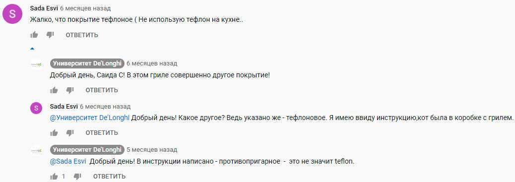 Вот например, ответ представителя DeLonghi Multigrill 1030 по данной претензии: