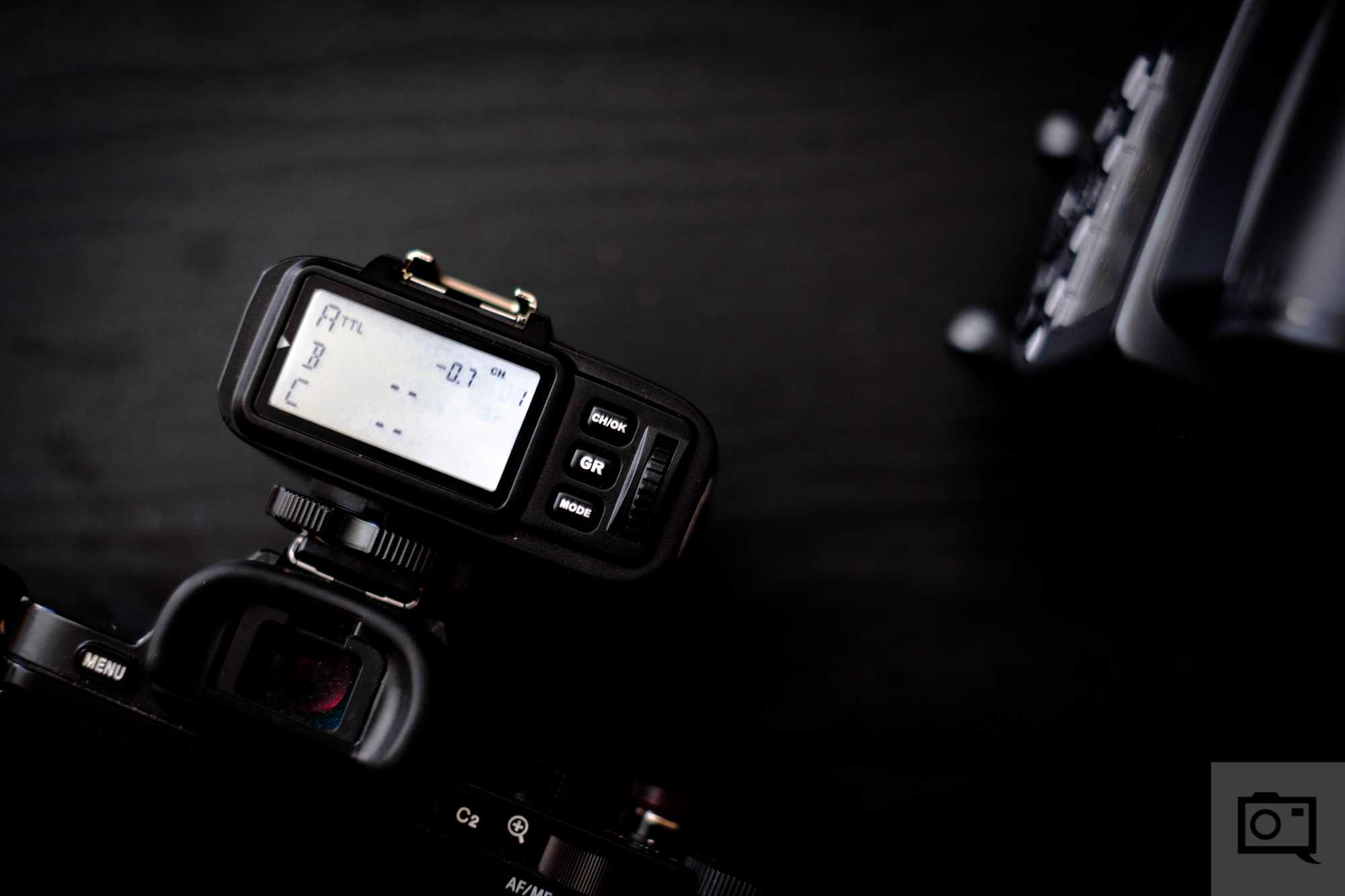 Godox X1T-S является передатчиком. На верхней части вы найдете горячий башмак для другой вспышки и кнопку тестирования.