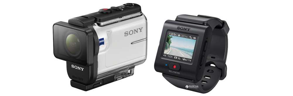 Неплохая модель экшн-камеры от Sony, укомплектована аксессуарами, крепежами, наручным пультом дистанционного управления и визирования. В остальном, это все тот же моноблок с ЖК-экраном, объективом Zeiss Tessar и оптическим стабилизатором.