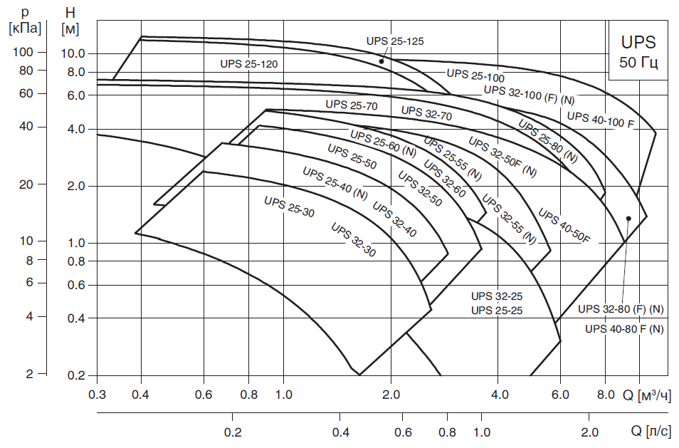 Насос Grundfos UPS , подбор. Таблица подбора.