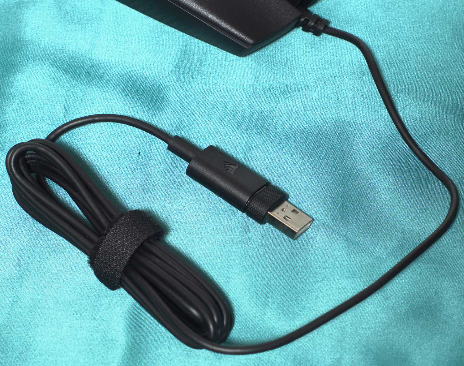 Кабель у мыши несъемный, резиновый, без дополнительной оплетки и имеет длину 1.8 метра. Из плюсов можно отметить наличие стяжки-липучки для фиксации кабеля и шершавой поверхности на разъеме USB тип А для удобства извлечения.
