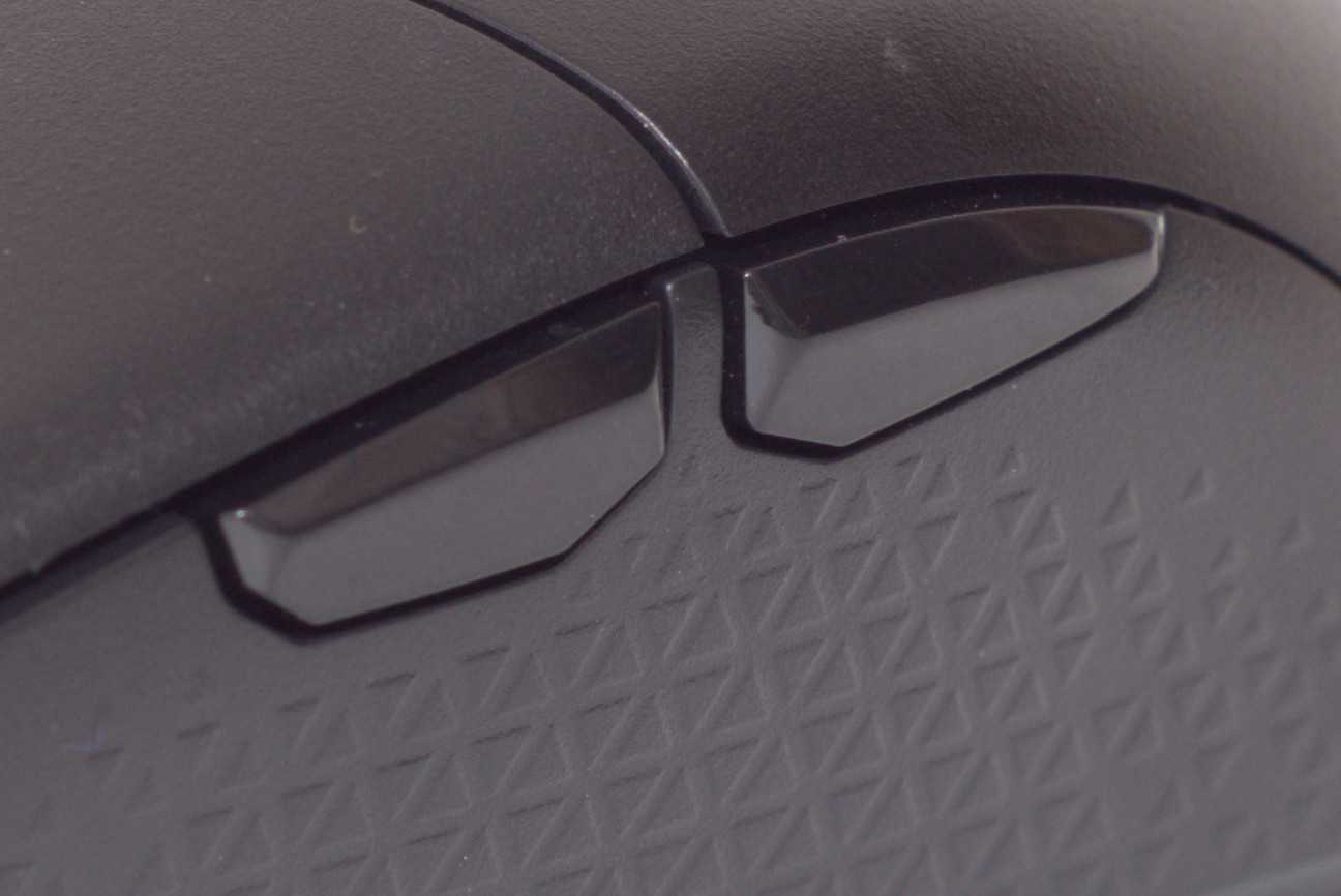 Несмотря на симметричную форму, мышь ориентирована на правшей, так как две боковые кнопки расположились только с левой стороны. Отметим наличие пластика с текстурированной поверхностью, призванной обеспечить лучший хват с боков.