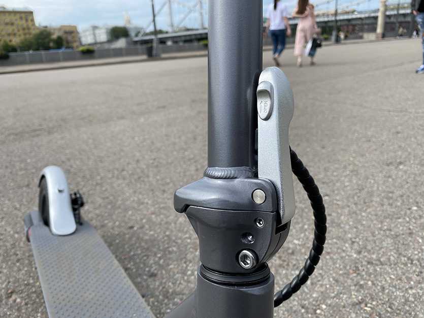 Рычаг, за который нужно потянуть, чтобы сложить самокат.