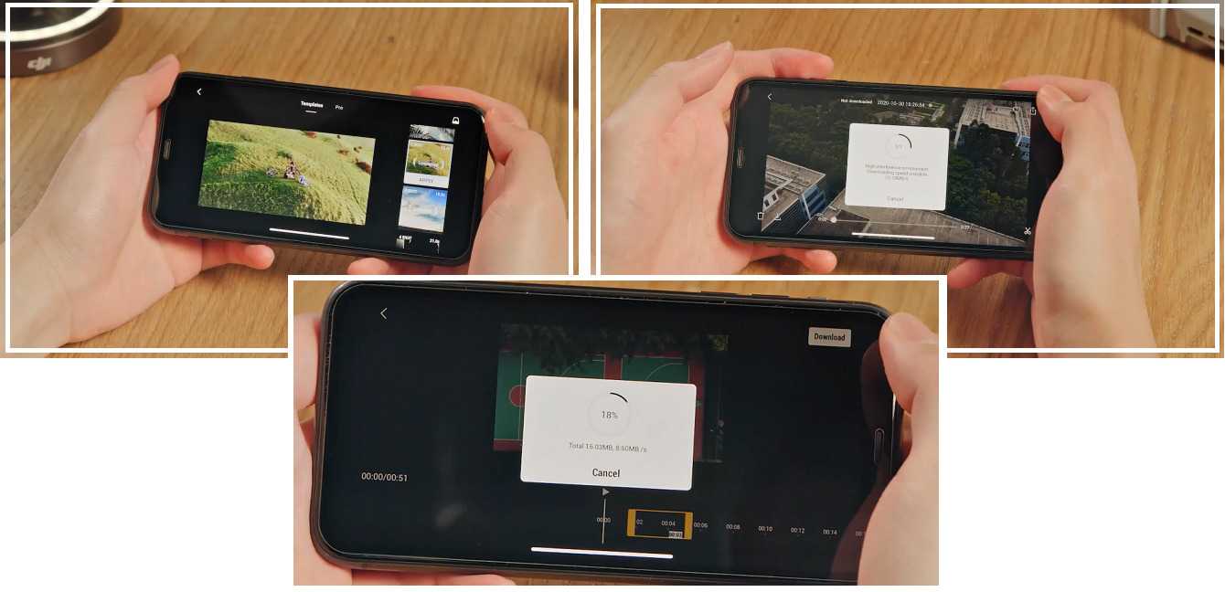 - Imaginative Templates — интуитивно понятный редактор встроенный в приложение DJI Fly. Посредством разнообразного набора творческих шаблонов позволяет в несколько тапов придать уникальности отснятому материалу и поделиться им со всем миром.