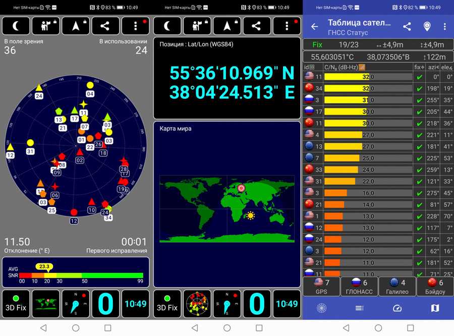 В определении точного местоположения и навигации помогают спутниковые системы GPS, BDS и ГЛОНАСС. Для координации по сотовым и Wi-Fi сетям служит режим A-GPS.