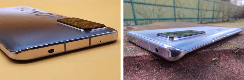 Рамки у аппаратов Honor 30-й серии изготовлены из алюминиевого сплава с хромированным покрытием. Сканер отпечатка пальцев на обеих моделях вмонтирован под экран (также возможна разблокировка телефона по лицу). На верхних панелях устройств находится инфракрасный порт для управления со смартфонов бытовой техникой. На нижних панелях — порты для подключения зарядных устройств стандарта USB Type-C и лотки для установки сим-карт. Аудио джека на 3,5 мм для подключения проводных наушников эти смартфоны не имеют. Зато в комплекты поставки входят переходники для подключения наушников через разъем для зарядки.
