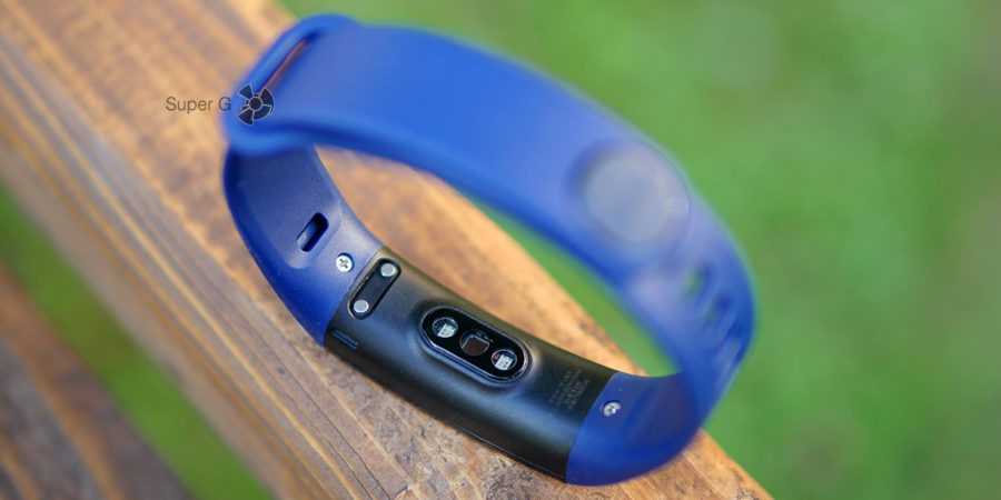 На нижней части трекера можно увидеть оптический датчик пульса и контакты для зарядки. Заряжается батарея с помощью собственного зарядного устройства, что не очень удобно, так как во время поездок или путешествий придется возить с собой дополнительный аксессуар. К слову, заряжать аккумулятор придется не так уж часто. Аккумулятора емкостью 110 мАч достаточно для 14 дней использования в очень щадящем режиме, и примерно для 5-6 дней использования “по полной”.