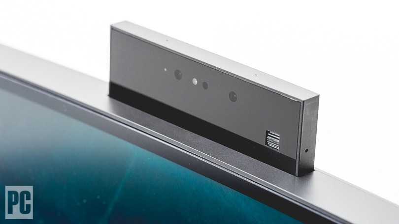 Причудливый поворот подпружиненной сборки веб-камеры EliteOne 1000 выдвигается из верхней части витрины. Это сравнительно большая сборка, намного больше, чем сама камера. Это означает, что места достаточно не только для ИК-датчиков, которые позволяют вам войти в Windows с помощью распознавания лиц, но также и для второго объектива, расположенного сзади, чтобы вы могли видеть все, что находится за вашим компьютером. Отчасти благодаря разрешению 1080p обе камеры предлагают изображения без зернистости при слабом освещении, от которой страдают веб-камеры ноутбуков.