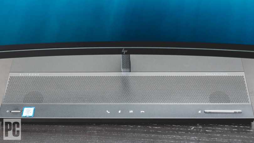 Хотя на дисплее EliteOne 1000 может отсутствовать сенсорная поддержка, выделенные элементы управления звуком вдоль нижнего края базы используют емкостное касание вместо физических кнопок. Проведение пальцем по канавке для увеличения или уменьшения громкости кажется очень футуристичным. Так же, нажав на значок телефона, чтобы ответить на Skype для Бизнес вызов.