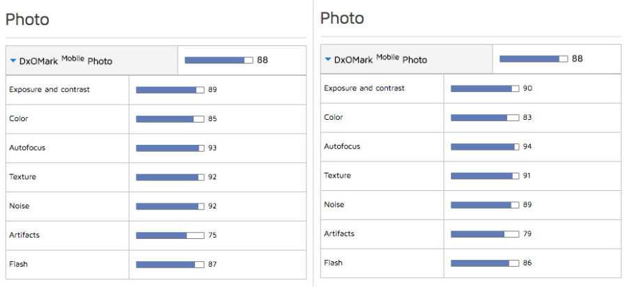 Кстати, тесты DxOMark только лишний раз это подтверждают. Слева результаты, набранные камерой Samsung S8, а справа S7 Edge.