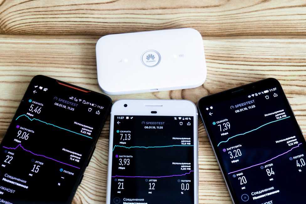 Кстати, о подключенных устройствах. Huawei говорит, что максимум этот модем обслужит 16 устройств. Мои тесты с тремя одновременными подключениями смартфонов показали такое распределение скорости: до 7 Мбит/с на одном устройстве на скачивание и 3-9 Мбит/с на отдачу. Увы, раздает интернет только в 2,4 ГГц, но будь здесь 5 ГГц — ценник был бы выше, так что миримся с одной частотой.