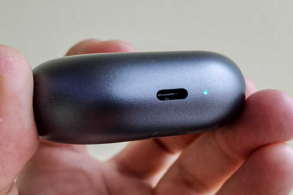 В нижней части находится разъем USB-C и индикатор зарядки устройства, он также дублируется и под крышкой. Для подключения и настройки синхронизации наушников и смартфона на боку футляра присутствует небольшая круглая кнопка.