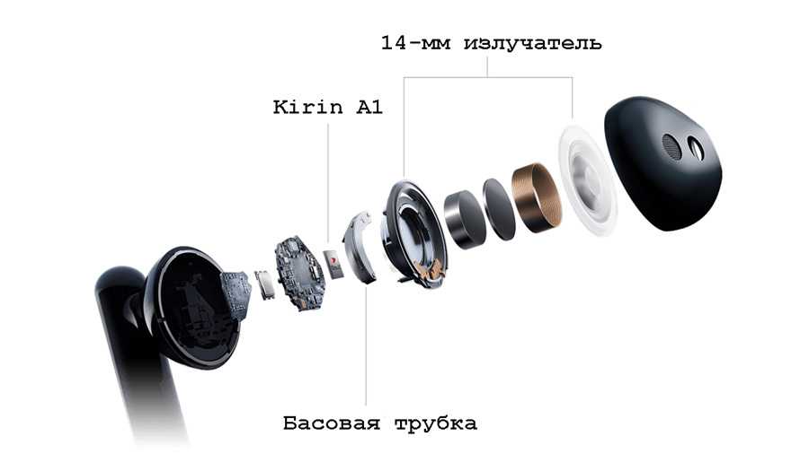 Каждый наушник FreeBuds 3 оснастили однокристальным процессором для носимых устройств Kirin A1, который при размерах 4,3х4,4 мм на 5% меньше, чем, например, Apple H1. Новый чип от Huawei с тактовой частотой 365 МГц первым в мире стал поддерживать интерфейс Bluetooth 5.1 и его версию Bluetooth Low Energy (LE) 5.1. Адаптивная технология перестройки рабочей частоты в перегруженном диапазоне 2,4 ГГц позволяет избегать интерференции сигнала и возможной потери связи. Как отмечалось, на тестовых испытаниях количество лагов за 30 минут не превысило двух. В Huawei утверждают, что такой же результат показывает и H1.