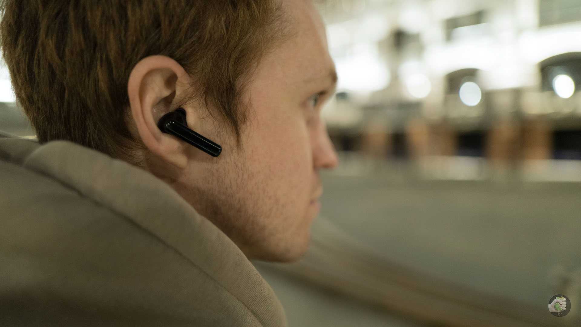 Теперь — мои голые впечатления после недели эксплуатации. Я очень боялся, что моя форма ушей не будет подходить под Huawei FreeBuds 3, и амбушюрами в данном случае проблему не решить, как в случае с вакуумными наушниками. Я ошибался, и мои уши оказались в числе избранных. Наушники держатся внутри достойно, хотя марафон я в них не бегал и от пришельцев кулаками не отбивался.
