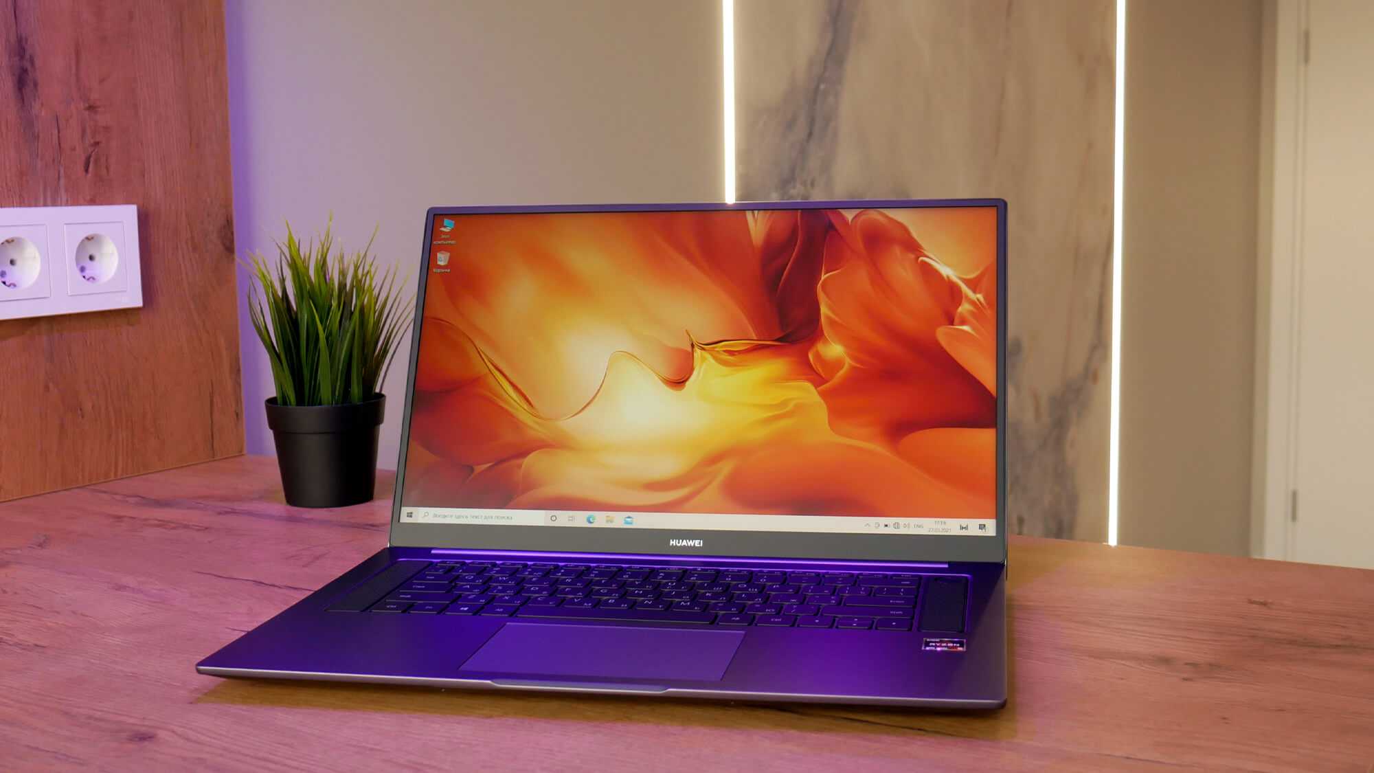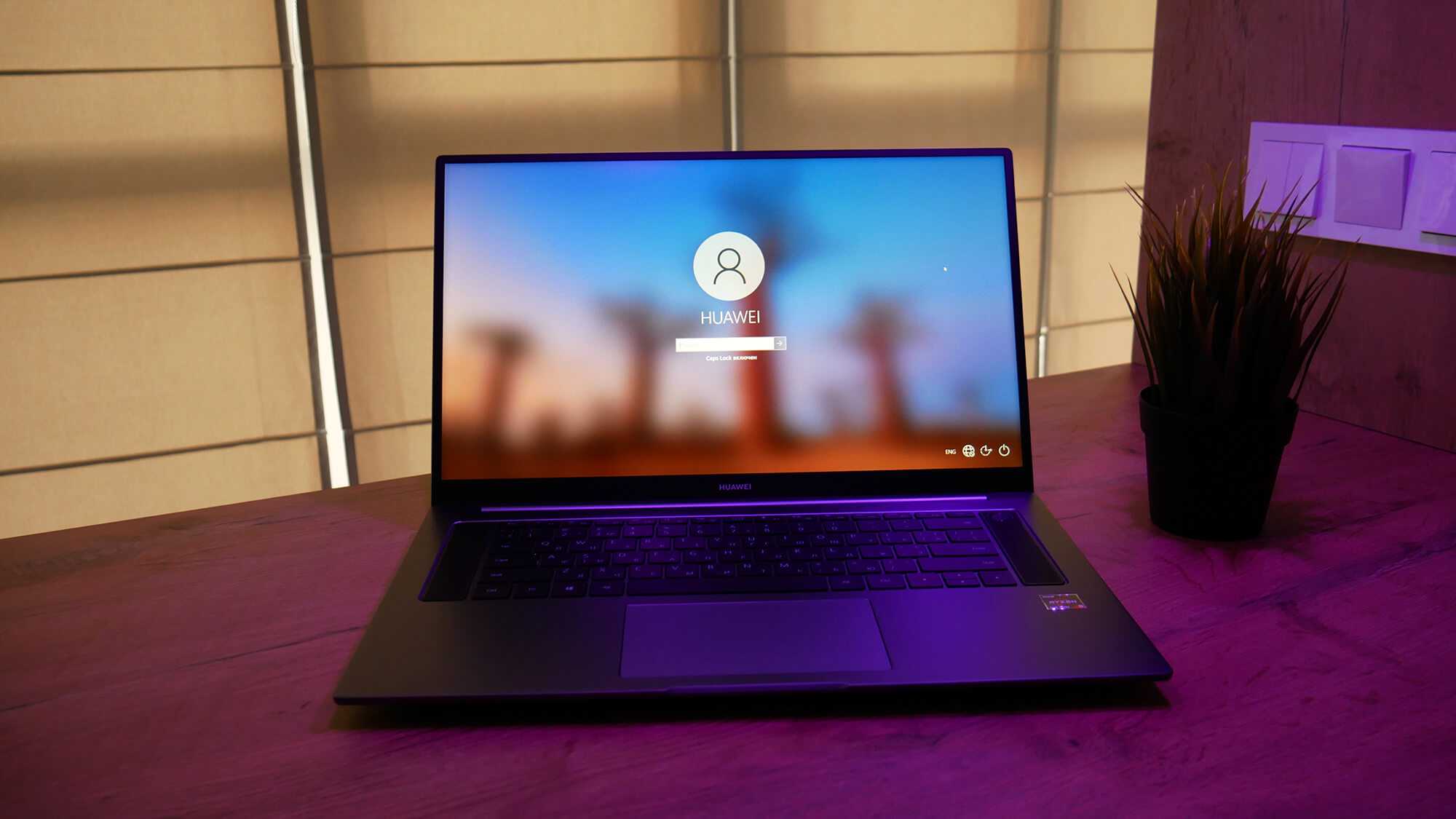 На неискушенный, «земной» взгляд, расцветка имеет сиреневый оттенок. Ну а крышка ноутбука предсказуемо украшена логотипом производителя — Huawei.