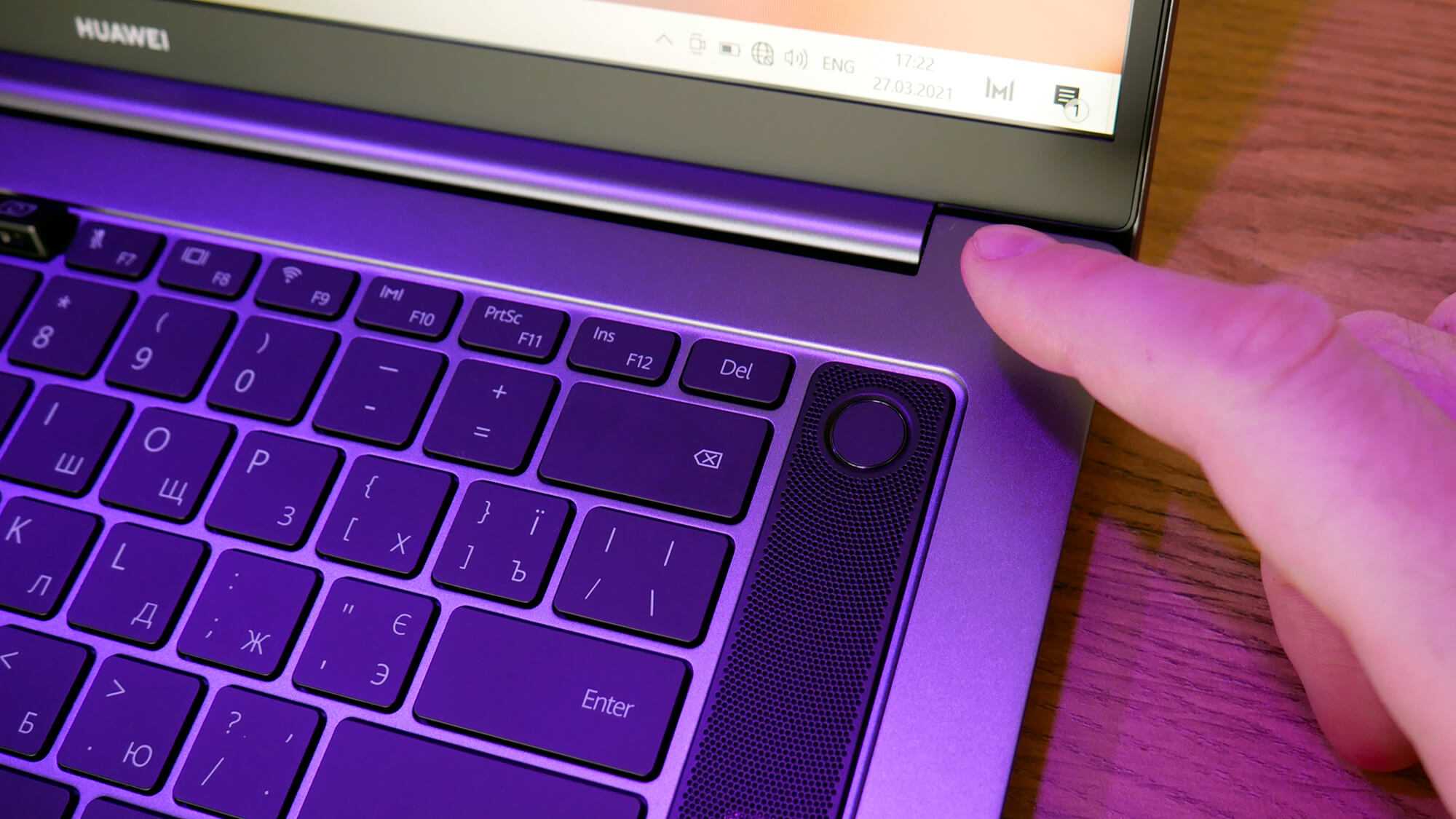 Правее тачпада наклеили NFC-метку под названием Huawei Share. О ней чуть ниже.