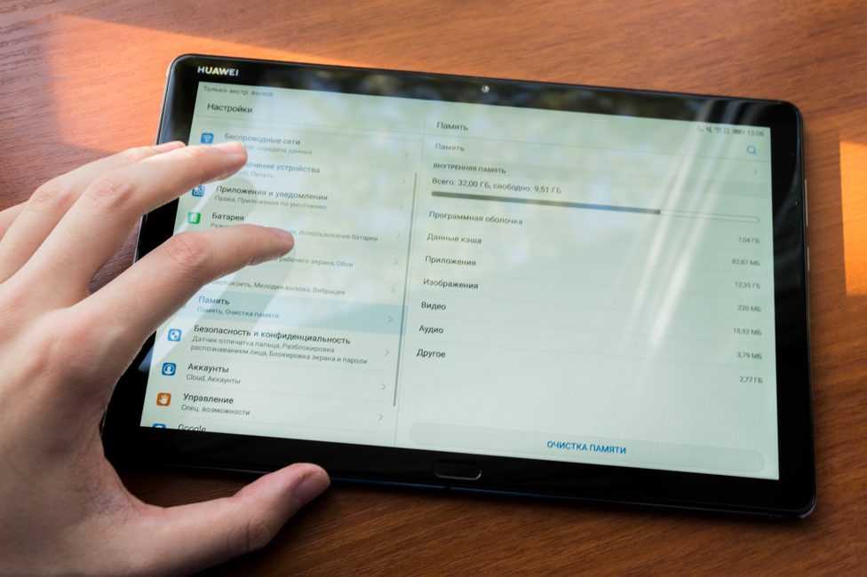 Оперативной памяти в MediaPad M5 lite 10 — 3 ГБ и её хватает, чтобы удерживать несколько одновременно запущенных приложений и переключатся между ними без перезапуска, но вот когда в ОЗУ «висят» все эти приложения, то планшет начинает притормаживать и анимации открытия программ становятся намного менее плавными, чем когда в меню запущенных ничего не открыто. В общем, с многозадачностью есть нюансы и чтобы не терять в плавности работы, приходится закрывать ненужные программы.