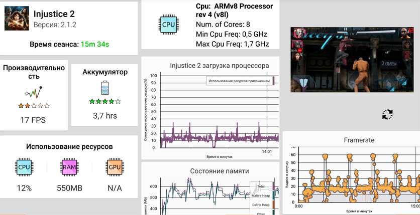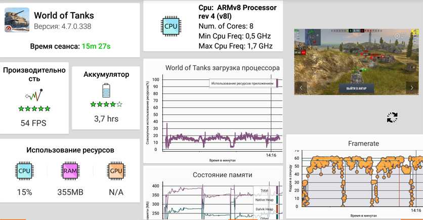 Должно хватить для комфортной игры даже в ресурсоёмкие тайтлы. World of Tanks: Blitz на настройках по умолчанию выдаёт 40–60 fps в зависимости от игрового сценария.
