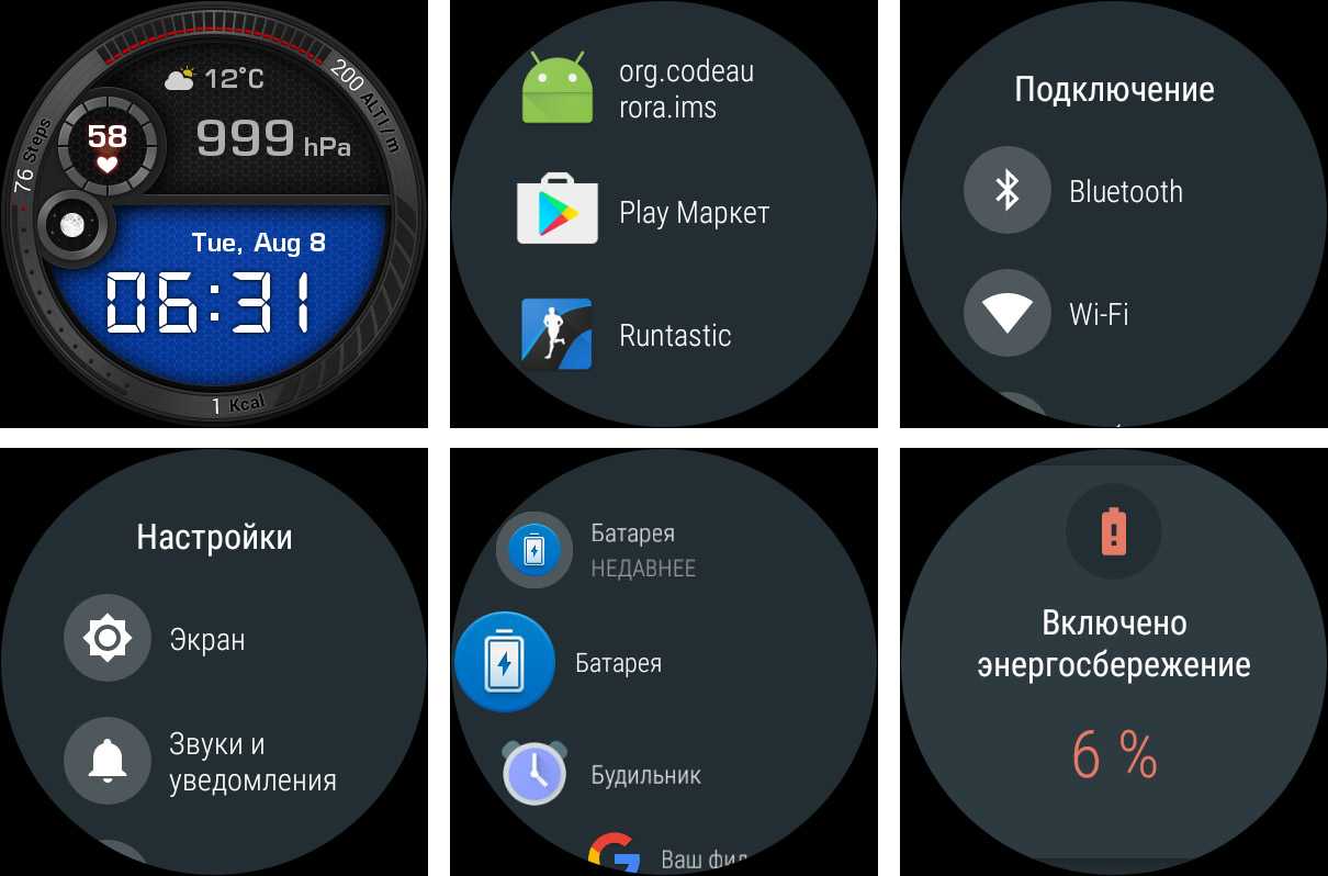 В плане софта в Huawei Watch 2 все стандартно — Android Wear 2.0 и несколько предустановленных фирменных циферблатов. Большинство из них не шибко сочетаются со спортивным внешним видом часов, поэтому я обычно использовал один-два вида из тех, что нарисованы «под Casio G-Shock».