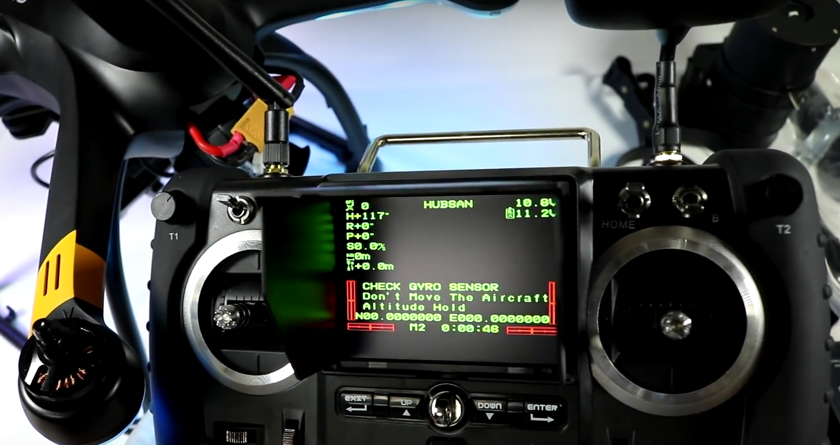 На дисплей выводятся исчерпывающие данные полетной телеметрии, включая информацию о заряде батареи управляемого устройства и трансмиттера, активные режимы полета, координаты дрона и число доступных спутников в рабочем радиусе.