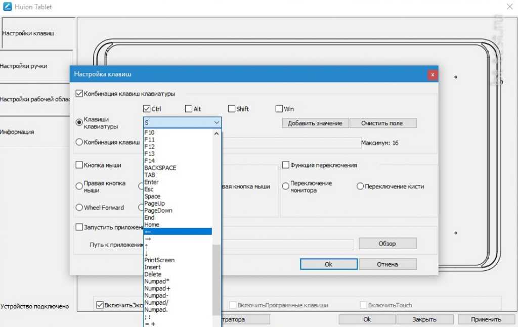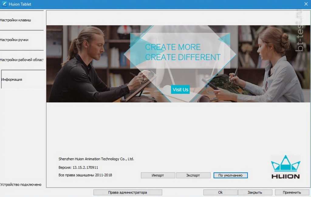Для использования всех возможностей графического планшета Huion H430P необходимо установить утилиту Huion Tablet. Ее придется скачать с сайта производителя.