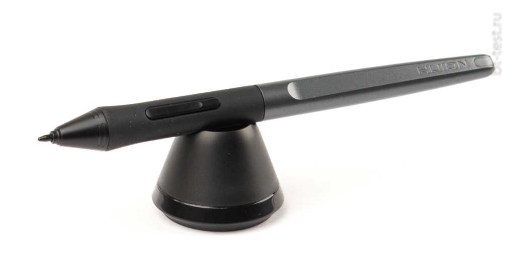 Кнопки сделаны «качелькой», верхняя кнопка немного выпуклая.Подставка под перо скрывает внутри 8 сменных наконечников, а на дне расположены приспособления для их снятия. Отрадно, что в Huion отказались от пинцета, который постоянно теряется в нужный момент.Перо можно располагать как вертикально, так и горизонтально.