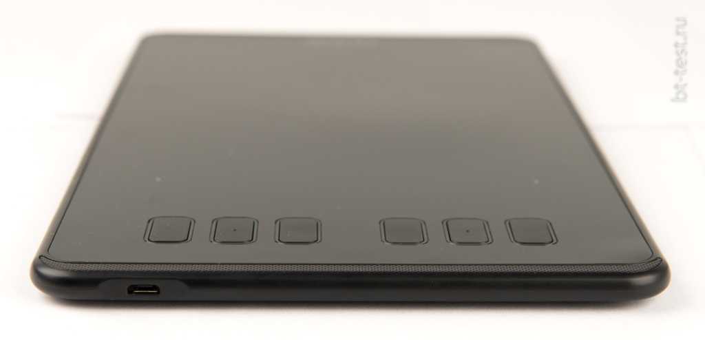 Планшет стоит на четырёх больших резиновых пятачках, что исключает его проскальзывание по столу. В общем, качество изготовления устройства и опции рабочей поверхности оставляют самые положительные впечатления.