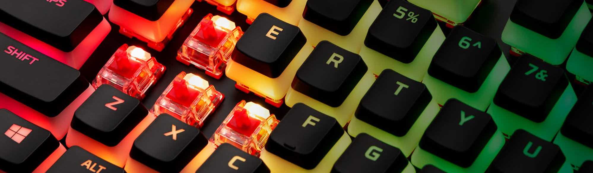 В качестве переключателей у HyperX Alloy Elite 2 фирменные HyperX Red с ресурсом в районе 80 миллионов нажатий и заводской смазкой. Особенность HyperX Red — линейный стиль работы. Путь хода у них сверху вниз, по прямой линии, без «удара» для дополнительного тактильного отклика. Это позволяет переключателям срабатывать немного быстрее и издавать меньше шума. Маленькие клавиши дополнительно оснащены только светодиодами, а длинные еще и стабилизаторами.