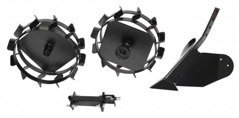 - Металлические колеса, оснащенные грунтозацепами. Катки устанавливаются на штатные ступицы, обеспечивают улучшенную проходимость при одновременном увеличении веса культиваторов.