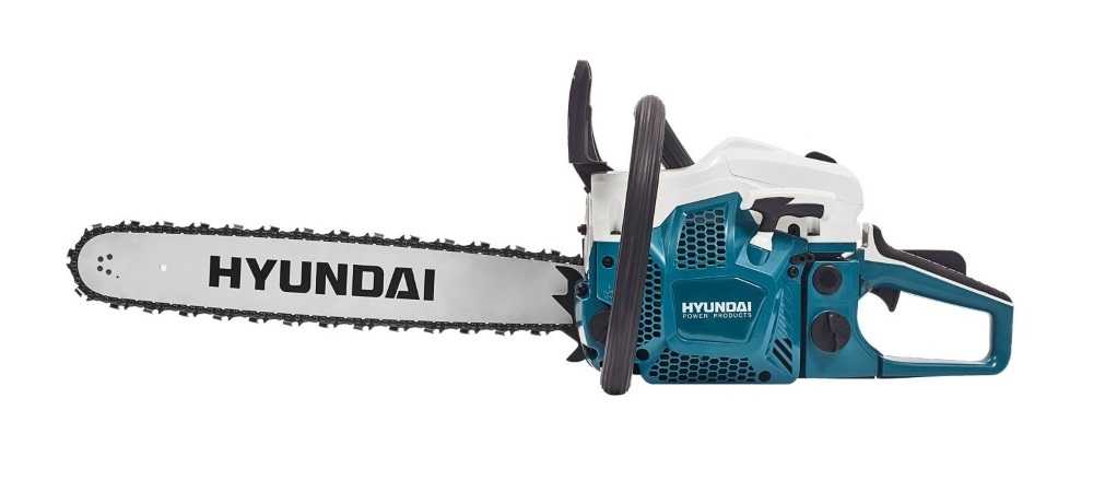 Hyundai X 560. Самая мощная бензопила в каталоге производителя. Инструмент оснащен двигателем на 4,1 лошадиных силы, комплектуется 20 дюймовой направляющей шиной и пильной цепью на 78 звеньев. К особенностям этой бензопилы относится наличие декомпрессионного клапана, системы облегченного запуска (Легкий старт) и топливной системы от японской компании Walbro. Бензопила оснащена всеми современными системами, обеспечивающими безопасность оператора и комфортные условия работы.