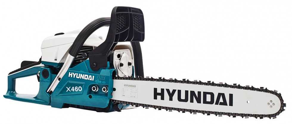 Hyundai X 460. Еще одна популярная модель в линейке производителя. Бензопила приводится во вращение двигателем мощностью 3,1 л.с, и поставляется в комплекте с 450 миллиметровой направляющей шиной и пильной цепью на 72 звена. Инструмент может применяться для любых видов хозяйственных работ, в том числе заготовки дров, поперечной и продольной распиловки древесины. Модель оснащена всеми современными системами, гарантирующими безопасность и комфорт оператора. Также владельцы этой цепной бензопилы отмечают высокое качество пильной гарнитуры и эффективную работу системы виброзащиты.