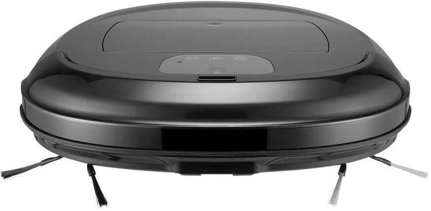 Процесс уборки традиционно состоит из таких компонентов – сбор мусора боковыми щетками и основной силиконовой, который попадает во всасывающее отверстие, а оттуда через фильтр – в контейнер. Влажная уборка твердых полов роботом рассчитана на площадь до 30 квадратных метров. Минусом этой модели является отсутствие отдельного бака для воды. Микрофибру нужно намачивать вручную.