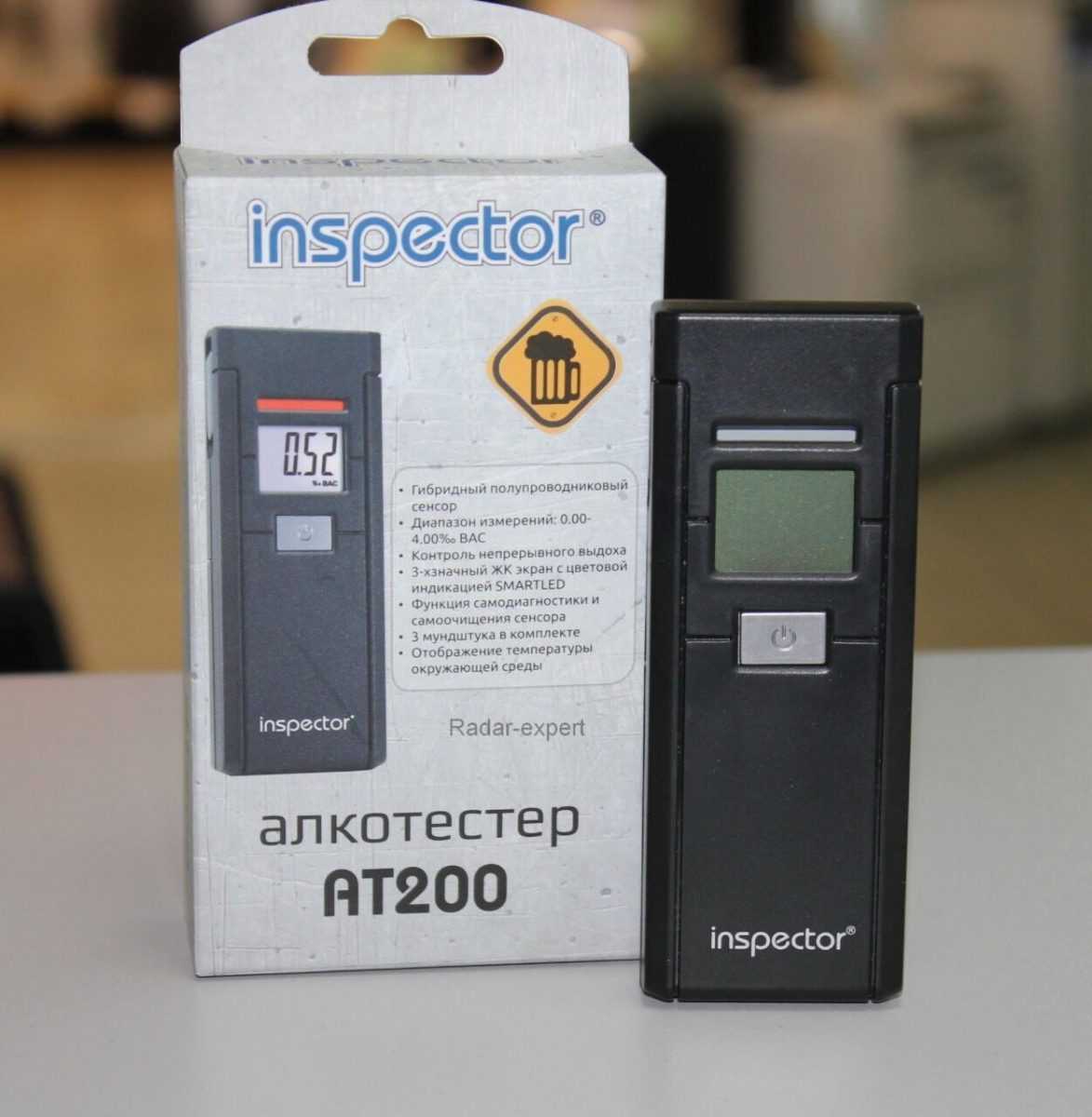 Inspector AT200 – простой в использовании и недорогой алкотестер, способный определять уровень содержания алкоголя в выдыхаемом воздухе в диапазоне от 0 до 4 промилле. Прибор оснащен датчиком полупроводникового типа и трехстрочным дисплеем с подсветкой, что упрощает взаимодействие с ним. Примерная цена − 500 рублей.